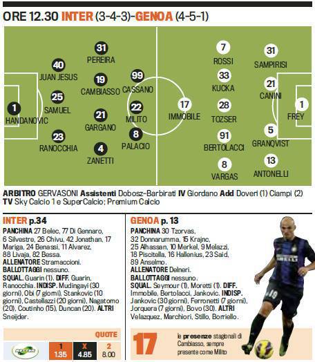 Inter Genoa Probabili Formazioni Tridente Pesante Per Stramaccioni Centrocampo Folto Per Delneri Foto Calciomercatonews Com